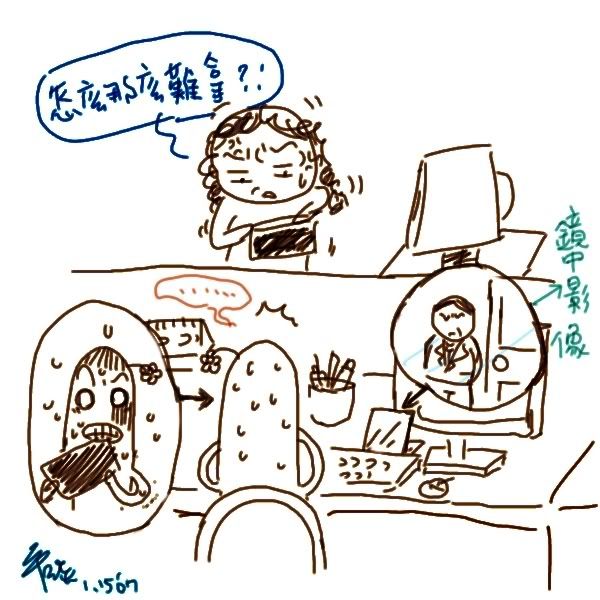 我咧...還來不及反應,鏡中看到董事長朝我這走來,反射動作將海苔直接擱在鍵盤旁,假裝什麼事都沒發生地敲著鍵盤...